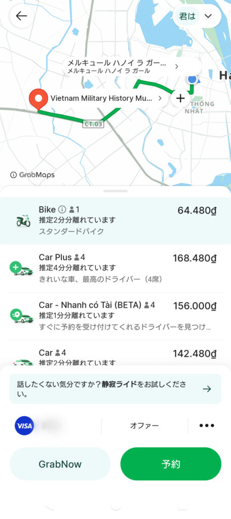 出発地とゴールを入力すれば、事前に料金が表示され登録したクレジットカードで支払いができるのでぼったくり被害に合うこともなく、とても便利なアプリです。
